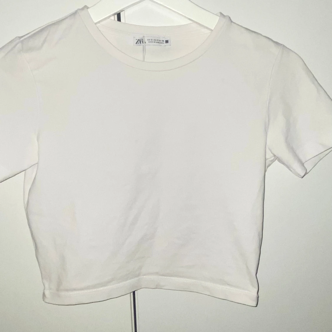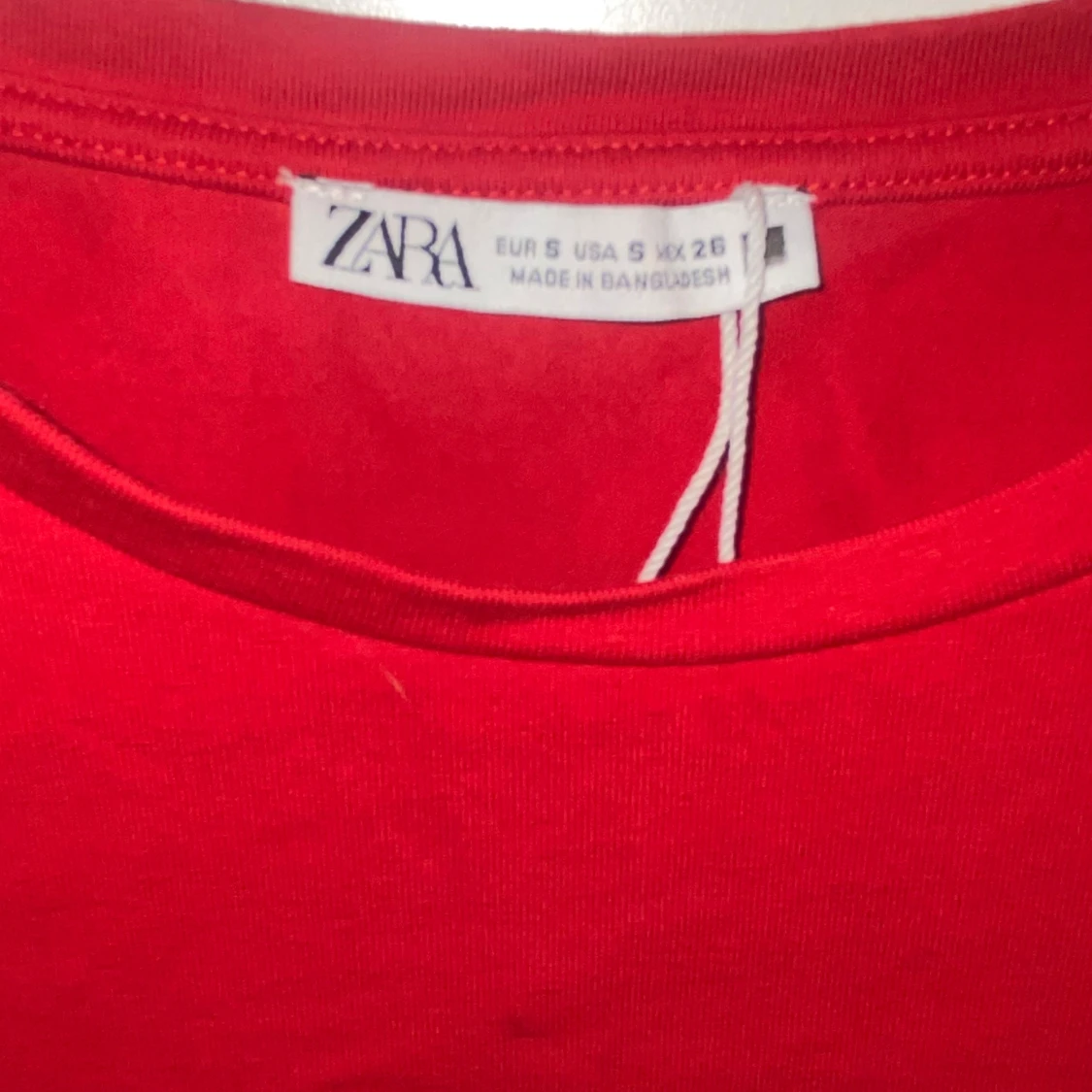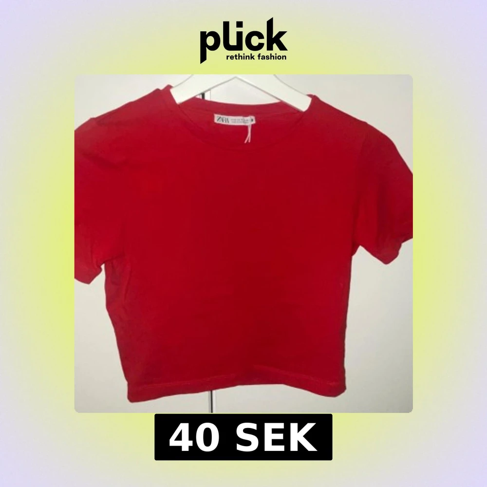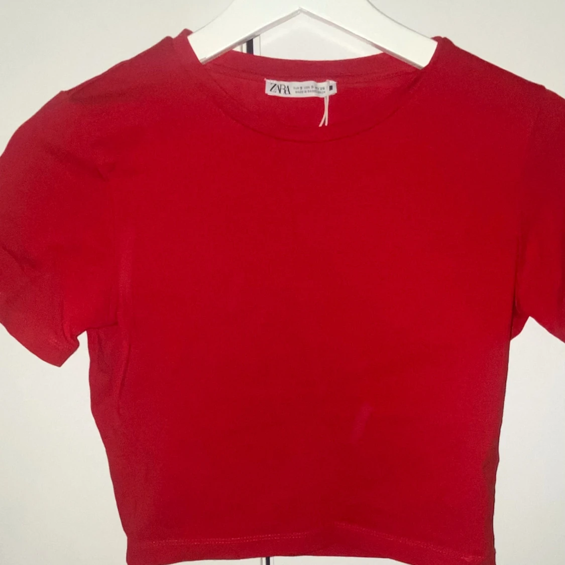 Säljer en enkel och stilren röd croppad topp från Zara. Modellen har rund halsringning och korta ärmar, perfekt att matcha med höga jeans eller kjol. T-shirten är i mjuk bomull och har en tight passform som sitter snyggt på kroppen. Det finns i två färger rött å vitt. Båda är S storlek passar i Xs, används 1-2 gånger. Styck kostar 35-40 kr. Två för 65