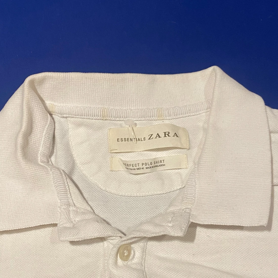 Säljer en stilren vit pikétröja från Zara Essentials. Den har en klassisk krage med tre knappar och ett diskret broderat emblem på bröstet. Perfekt för både vardag och festliga tillfällen. Tröjan är i bra skick och passar till det mesta i garderoben. Öppen för förslag!