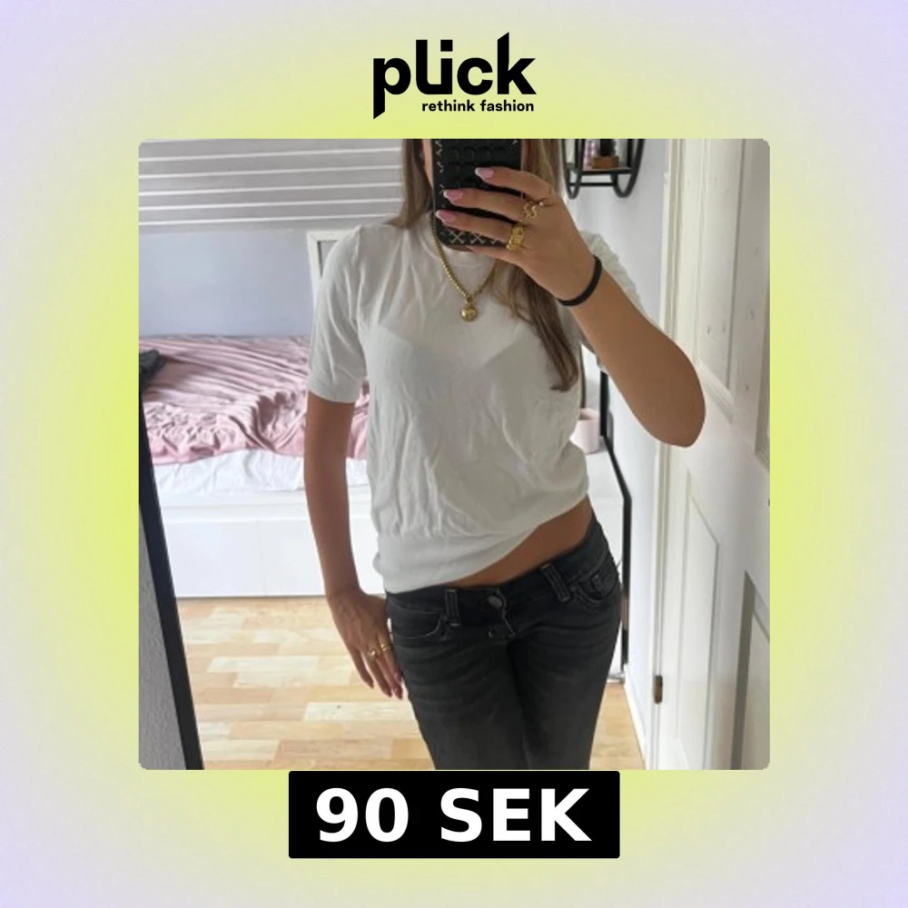 Enkel och fräsch vit t-shirt från Zara i storlek S. Modellen är klassisk med rund hals och korta ärmar, perfekt till jeans eller kjol. Materialet är mjukt och skönt bomullstyg som sitter snyggt på kroppen.