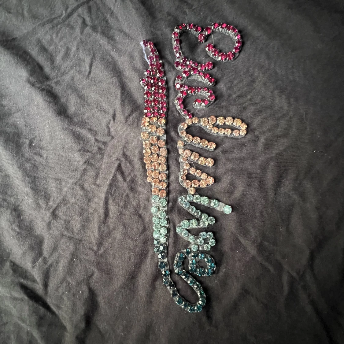 Mörkgrå t-shirt från zara med texten ”exklusive” på skriven i färgglada pärlor.