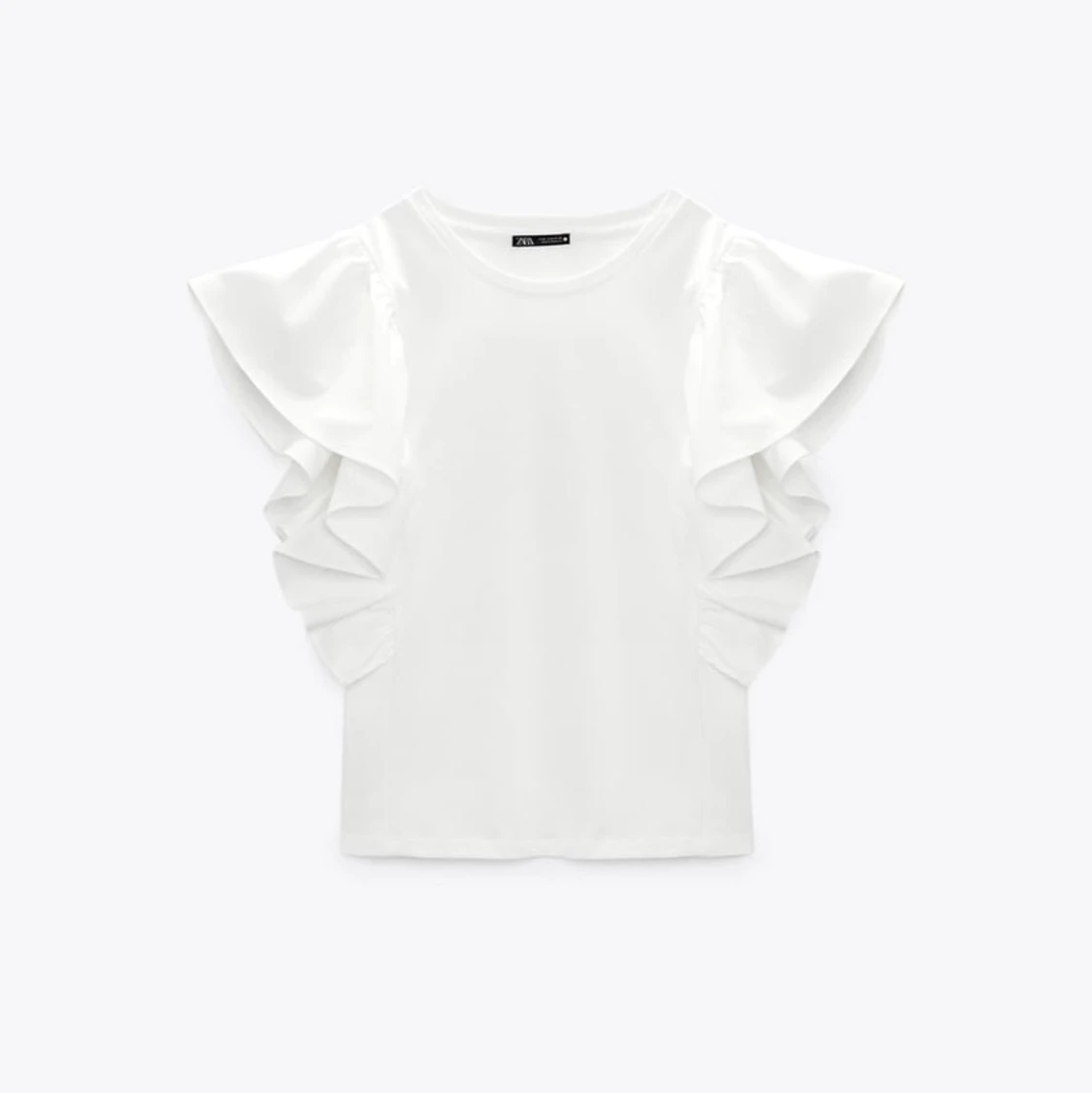 Jättefin volang t-shirt från zara. Säljs för att den aldrig kommer till användning 🌸