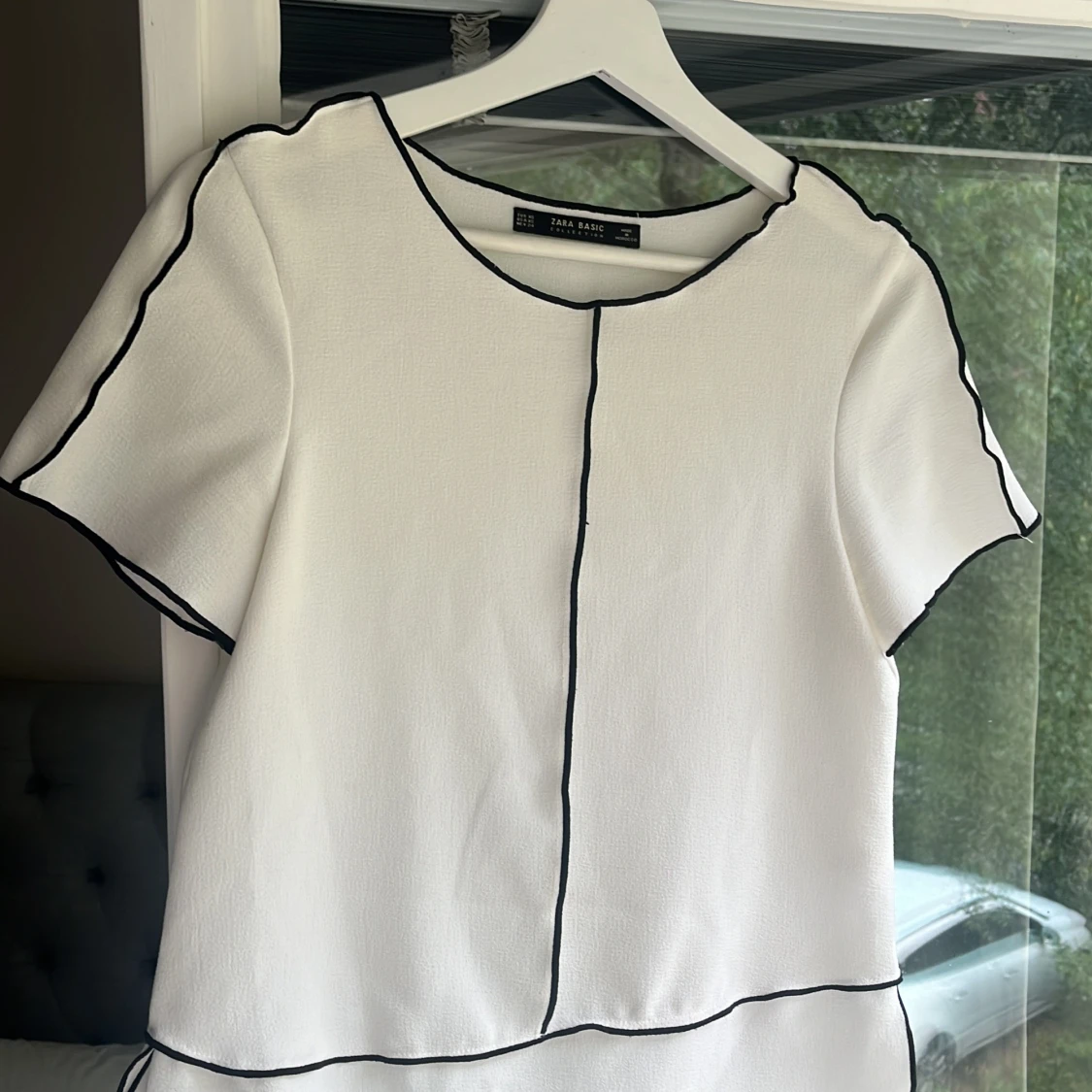 Supersöt tröja från zara i fint material och med svarta detaljer. Tröjan är bara använd 1 gång så nyskick!