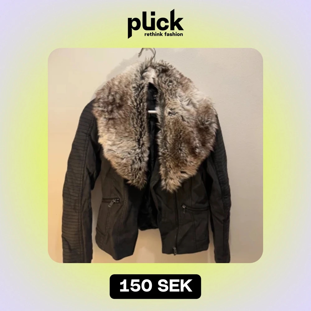 Skinnjacka med pälskrage. Knappt använd