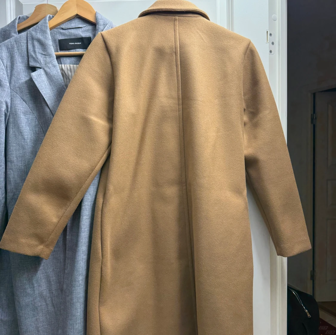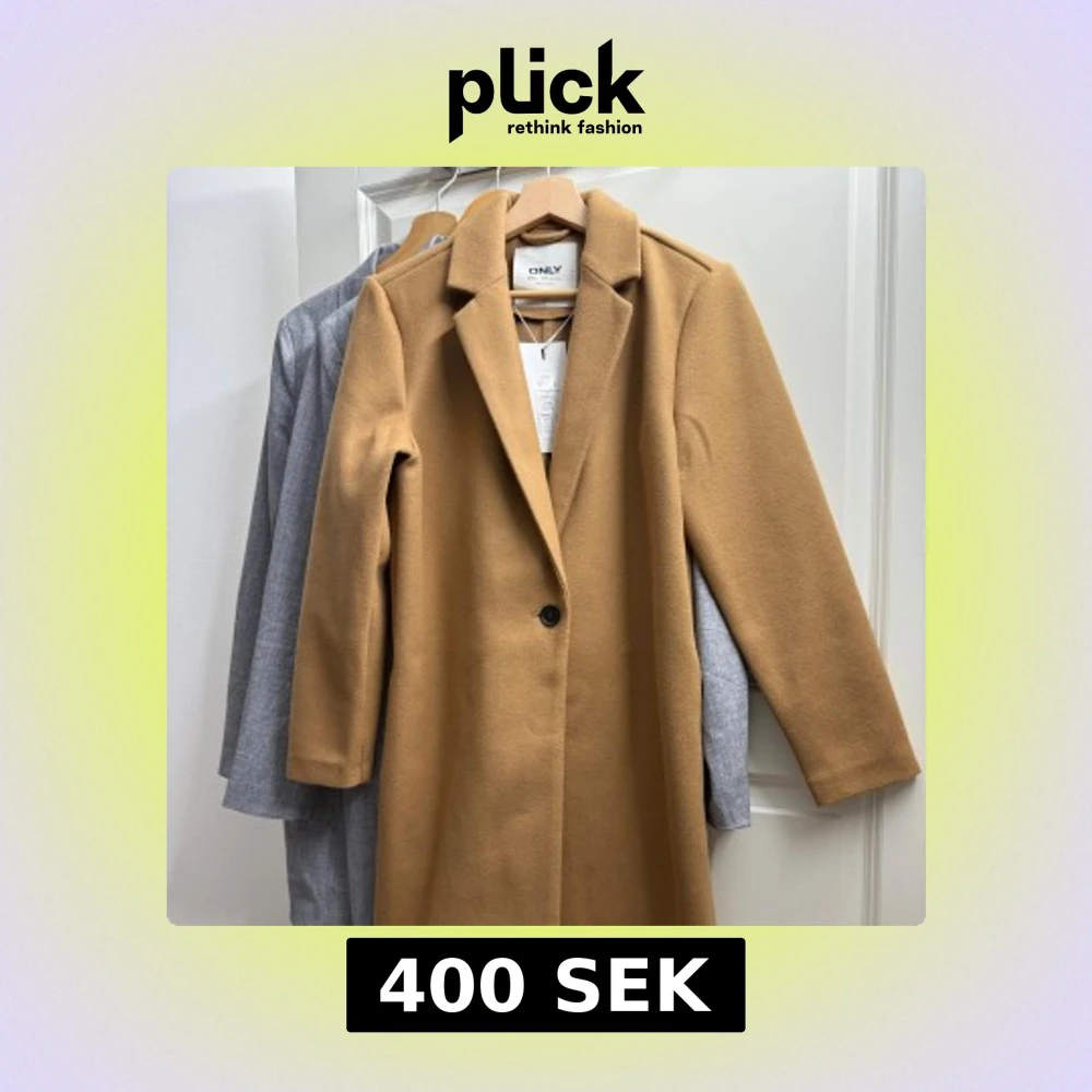 Säljer en stilren kamelbrun kappa från ONLY med klassisk krage och en knapp framtill. Lång modell med raka ärmar och snygg passform. Perfekt för dig som vill ha en tidlös och trendig look.