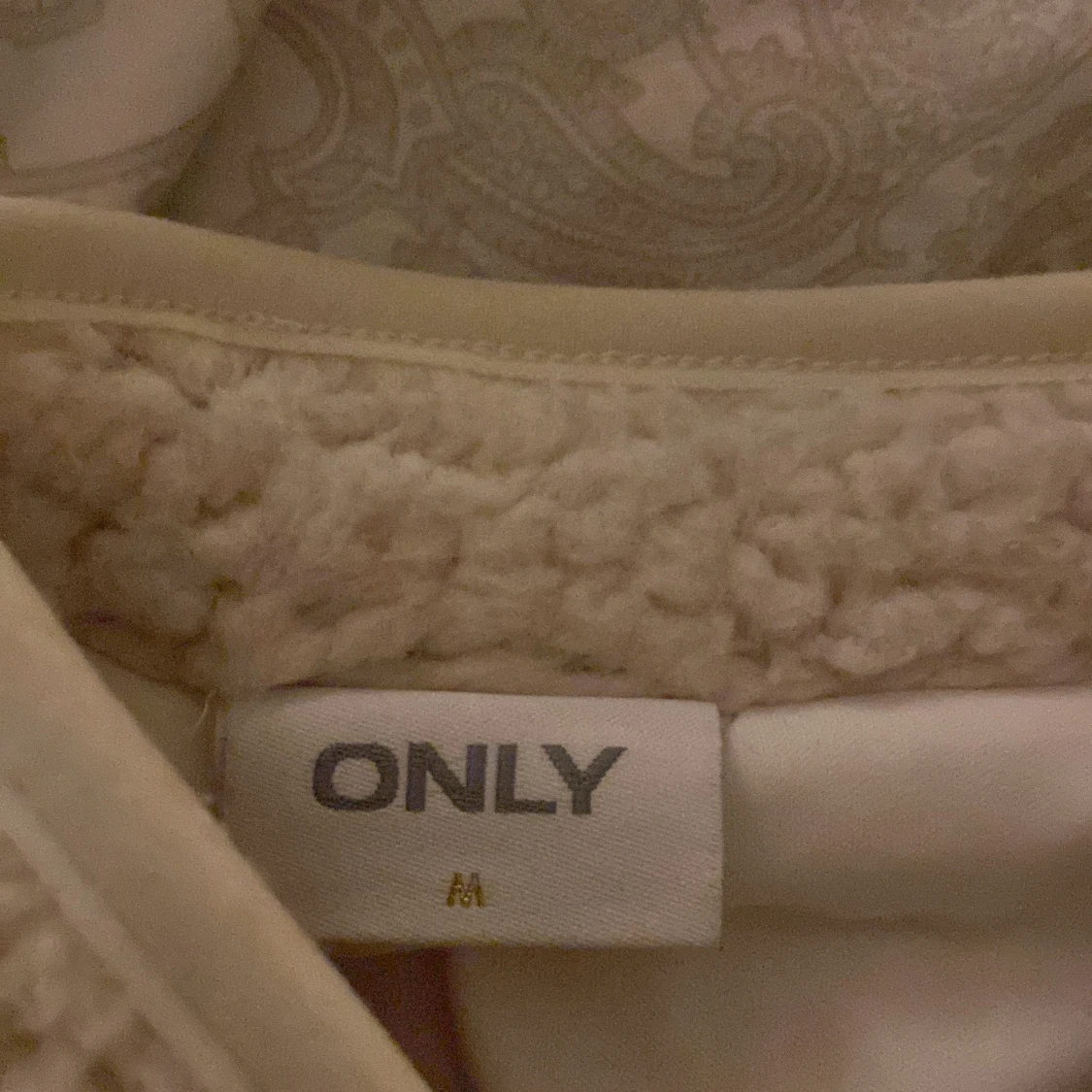 Säljer en mysig vit teddyväst från ONLY i storlek m. Västen har en dragkedja framtill och en praktisk bröstficka. Perfekt för lager-på-lager under kyliga dagar.