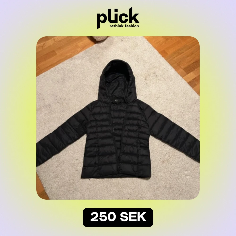 En svart höst/vår jacka med luva och fickor från only i storlek M. Inte använd så mycket. Kostade 400 som ny.