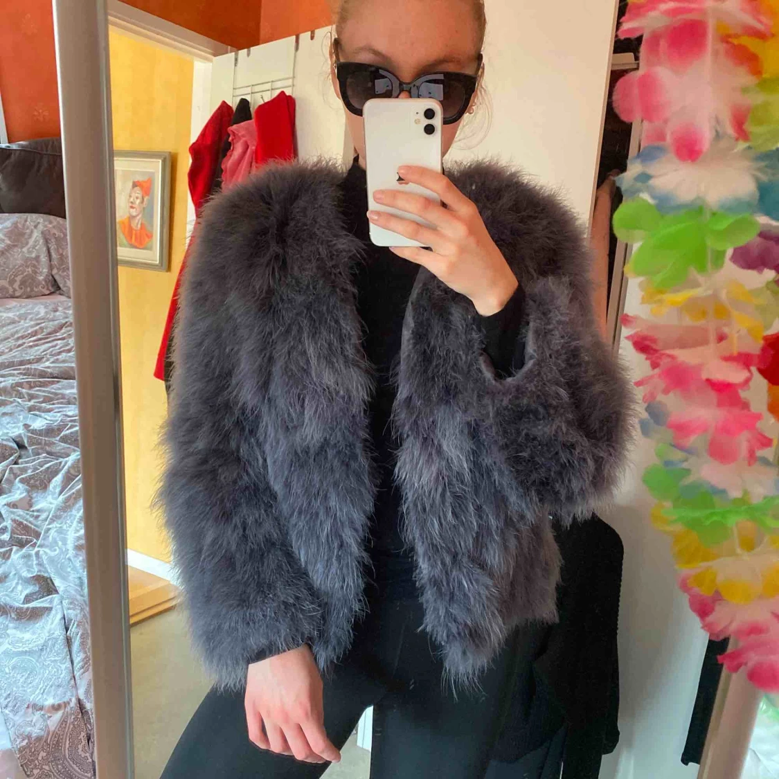 Äkta grå strutspälsjacka. Fint skick! Säljes pga flytt.