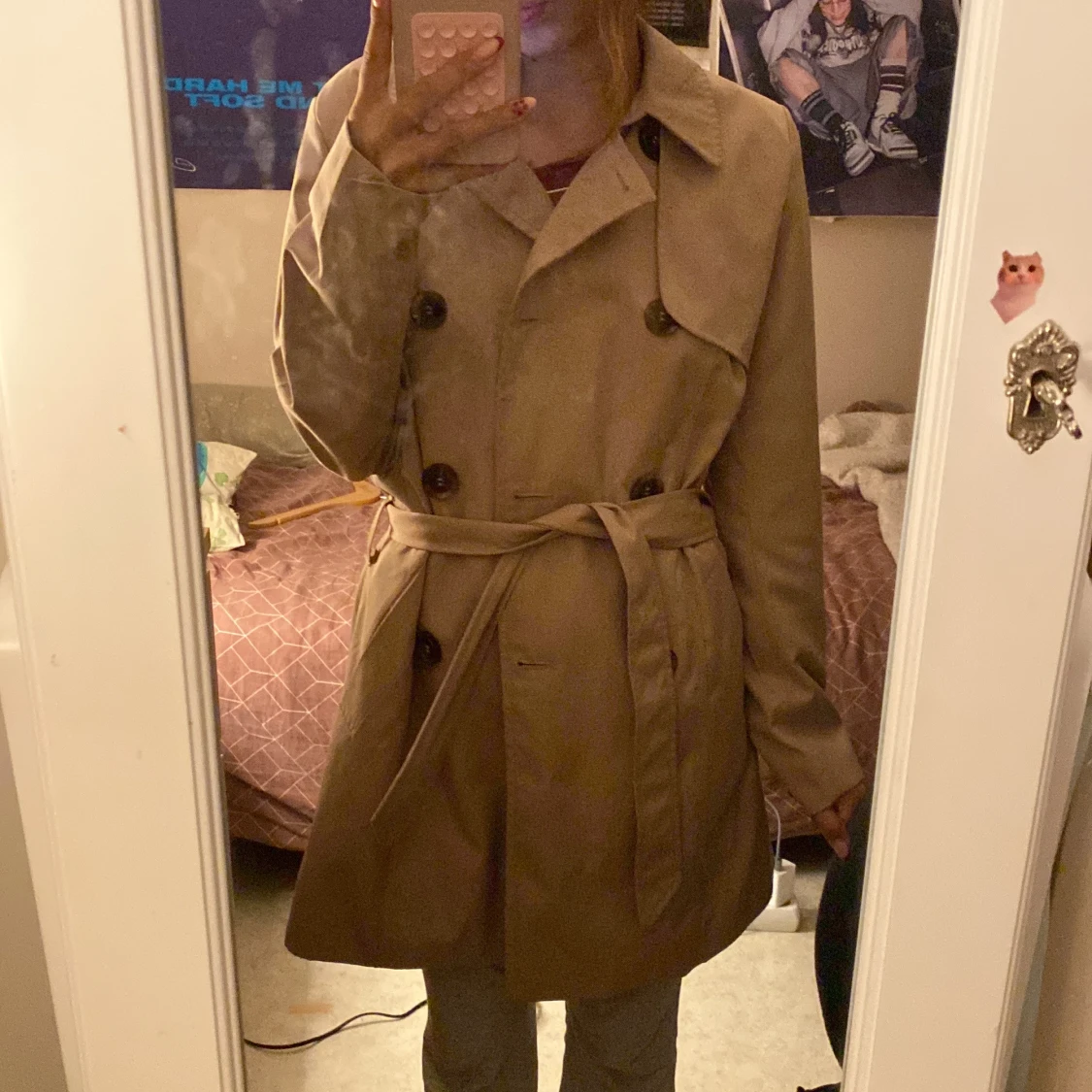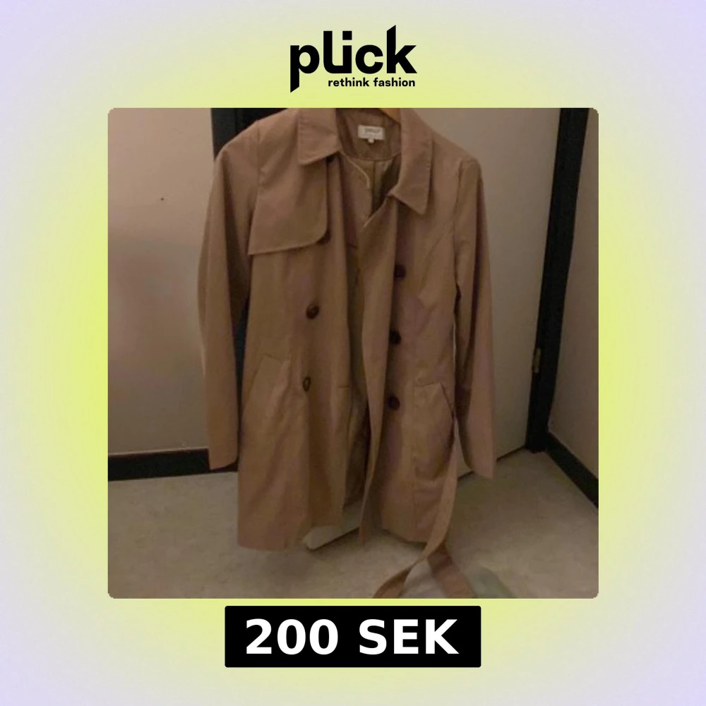 Snygg beige trenchcoat från ONLY i storlek XS. Jackan har klassisk dubbelknäppning, bälte i midjan och stora knappar. Perfekt för dig som vill ha en stilren och tidlös look. Långärmad och med krage för extra stilpoäng.