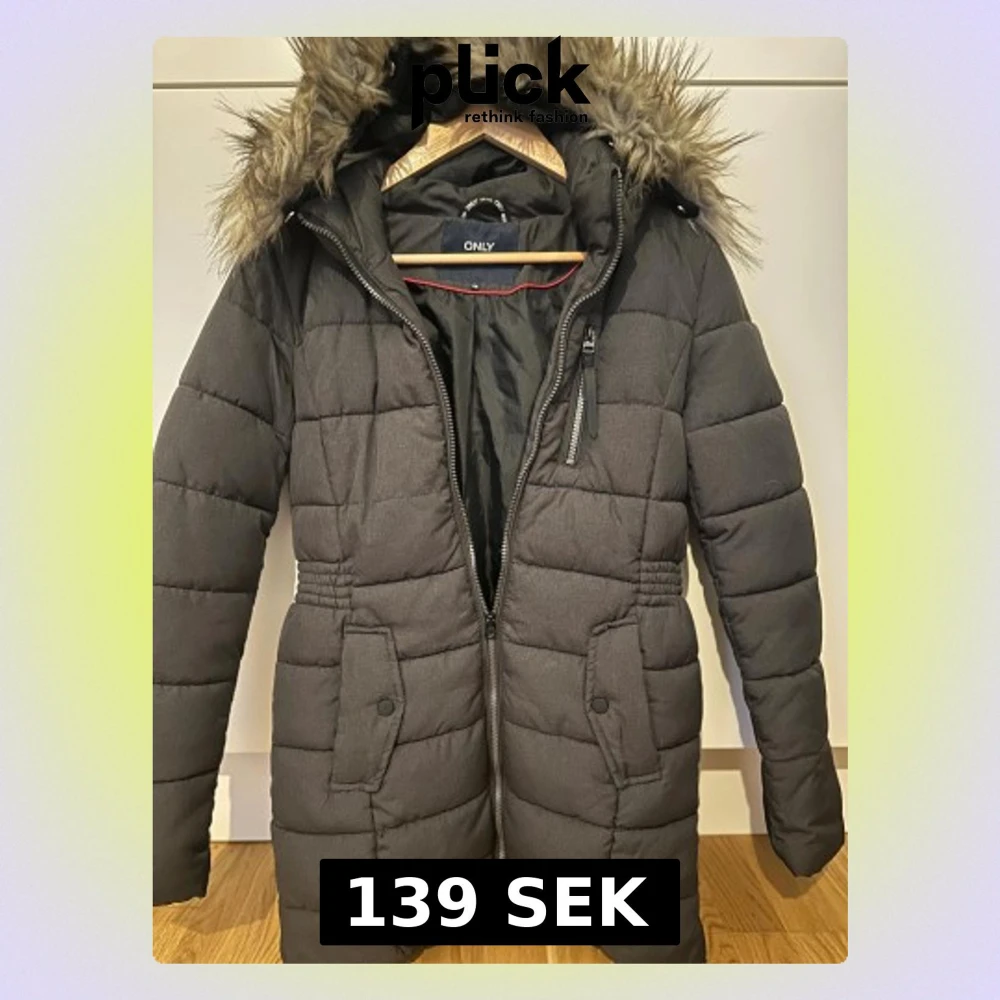 Snygg mörkgrå pufferjacka från ONLY i storlek XS. Jackan har en fluffig huva med fuskpäls, quiltad design och praktiska fickor med knappar. Dragkedja framtill och en extra ficka med zip på bröstet. Perfekt för kalla dagar och riktigt cozy vibe.