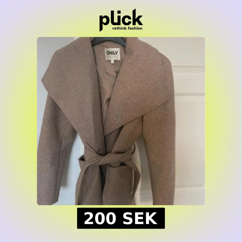Stilren beige kappa från ONLY med bred krage och knytskärp i midjan. Jackan har långa ärmar, två fickor framtill och är tillverkad i ett ull-liknande material. Perfekt för dig som vill ha en klassisk och snygg look. Den är lite nopprig på ena armen syns knappt, inte använd så mycket