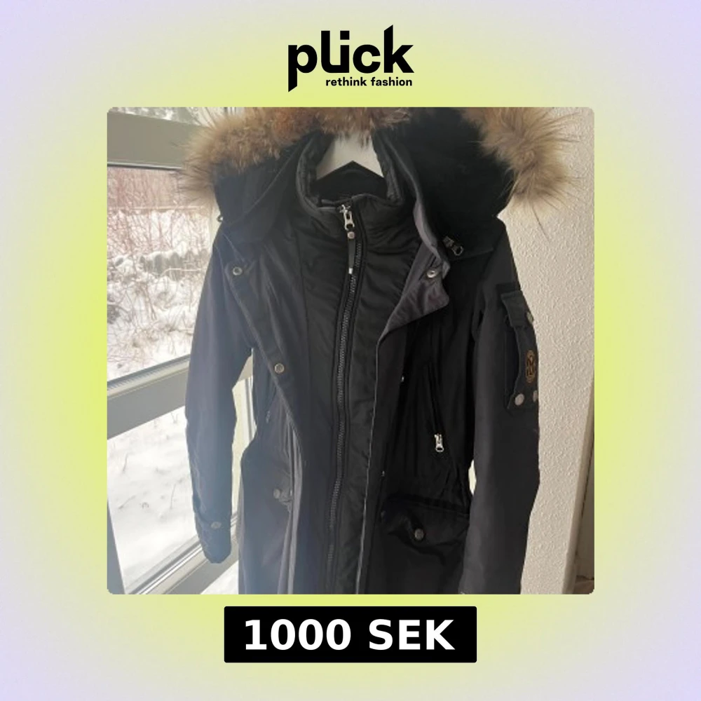 Snygg och funktionell svart parkajacka från Wiggy's med laminerad isolering. Den har som en inbyggd väst/jacka. Jackan har en avtagbar huva med äkta pälsdetaljer och flera praktiska fickor. Perfekt för kalla vinterdagar. Den är märkt med Stl 1. Jag skulle säga XS-S