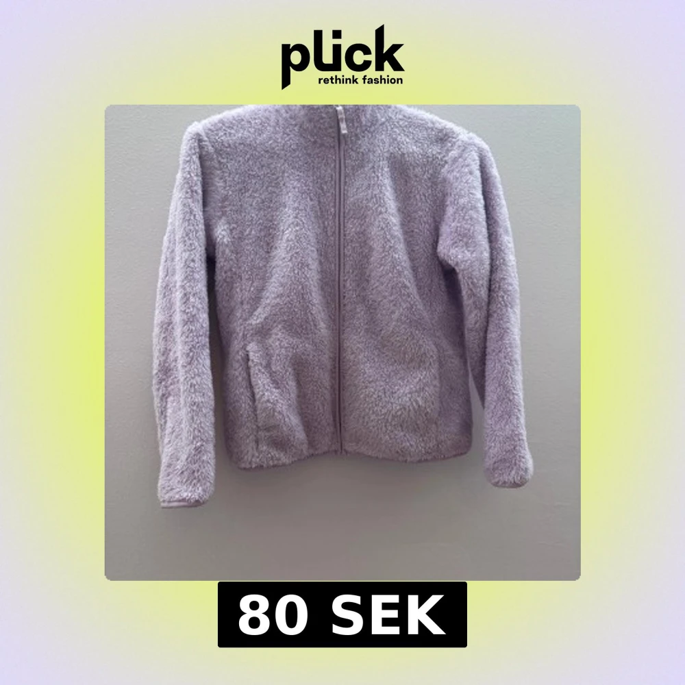 Mysig lila teddyjacka med dragkedja framtill. Perfekt för kyliga dagar med sin fluffiga och mjuka textur. Jackan har långa ärmar och en enkel design som gör den lätt att matcha med olika outfits.