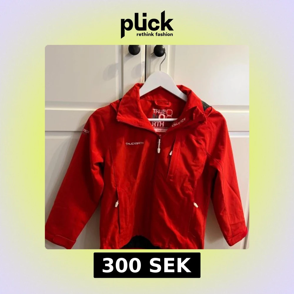 Säljer en röd jacka från True North, perfekt för nordiskt väder. Jackan har en dragkedja framtill och en praktisk huva. Den är designad för att vara både funktionell och stilren.