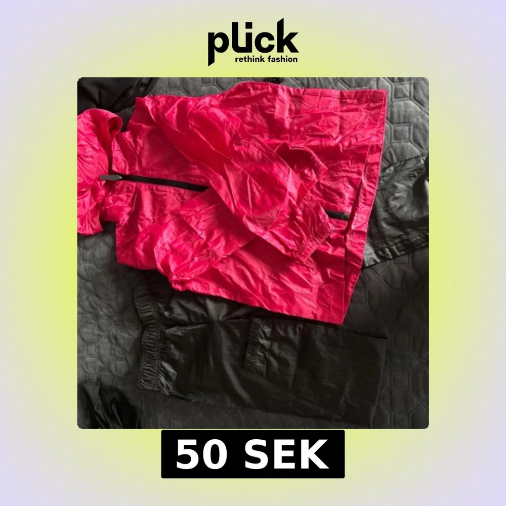 Säljer en kompakt och lätt rosa regnjacka från Active med svart dragkedja och huva. Jackan är tillverkad i syntetmaterial och har elastiska muddar vid ärmslut. Perfekt att packa med i den medföljande svarta påsen.