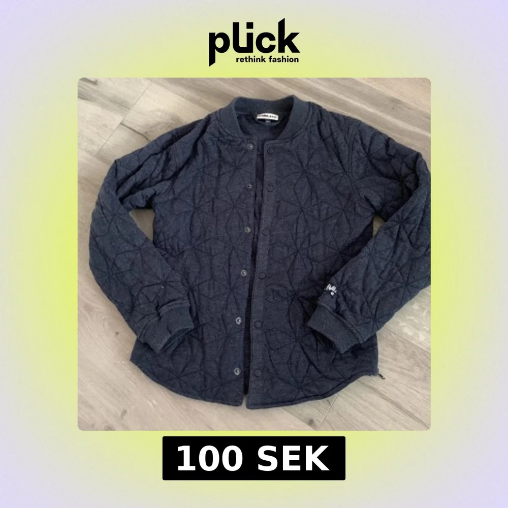 Säljer en mörkblå quiltad jacka från Pomp de Lux. Jackan har en rund halsringning och knappar framtill. Den är perfekt för kyligare dagar och har långa ärmar med ribbade muddar. *barn size