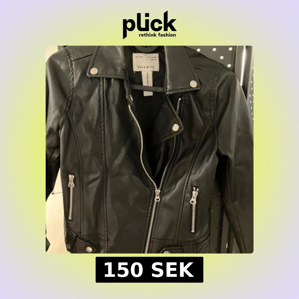Snygg svart skinnjacka från Zara Girls i storlek 140 / 9-10 år. Jackan har aldrig använts pga storleken (felköp). Jackan har klassisk bikerstil med silvriga dragkedjor, tryckknappar och coola detaljer. Perfekt för dig som vill ha en edgy look. Materialet är syntet med skinnkänsla.
