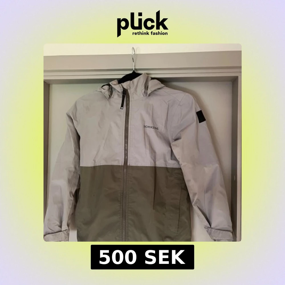 Snygg tvåfärgad vindjacka från Didriksons i grått och beige. Jackan har huva, hel dragkedja framtill och stilren design med logga på bröstet. Perfekt för blåsiga dagar och enkel att matcha med jeans eller sneakers.
