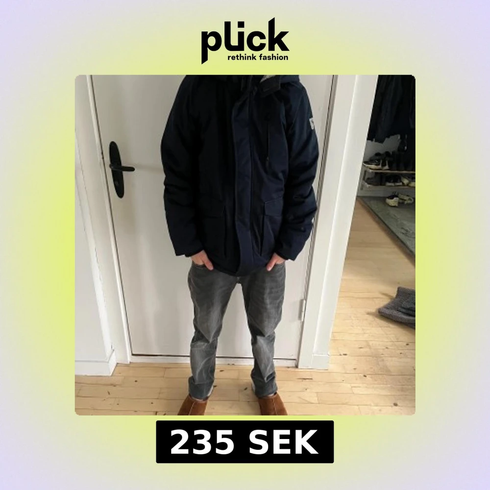 Säljer en mörkblå barn vinterjacka med mysigt foder. Den har en dragkedja framtill och praktiska fickor. Perfekt för kalla dagar och håller dig varm och bekväm. Jackan har en stilren design och passar till det mesta. Perfekt för vintern! ❄️