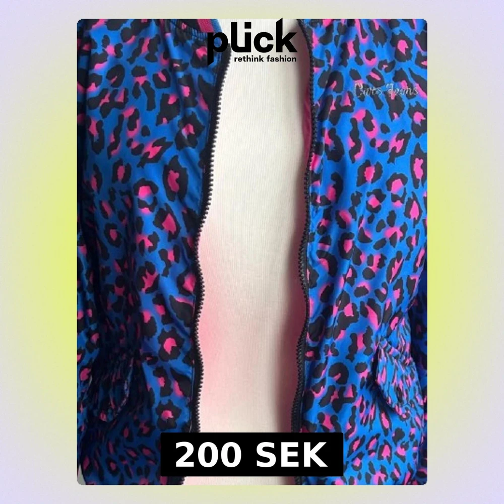 Säljer en vändbar vindjacka från Cars Jeans med ena sidan i stark rosa och broderad blå tiger, andra sidan i blått leopardmönster med rosa och svart detaljer. Jackan har dragkedja och är tillverkad i polyester. Perfekt för dig som gillar att sticka ut.