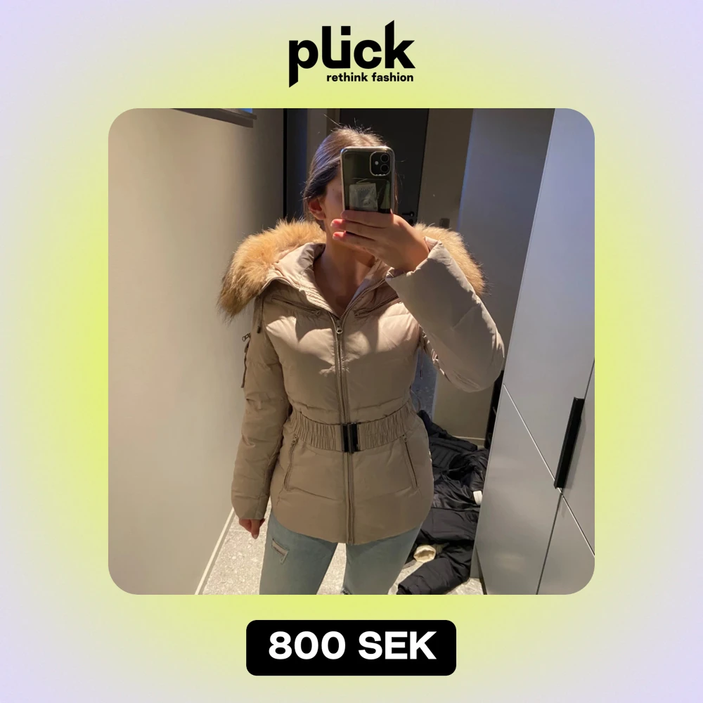Säljer en superfin beige dunjacka från Hollies. Den har en mysig pälskrage och ett snyggt bälte i midjan. Jackan är långärmad och perfekt för vintern. Den har dragkedja och är i mycket bra skick. Perfekt för kalla dagar! ❄️