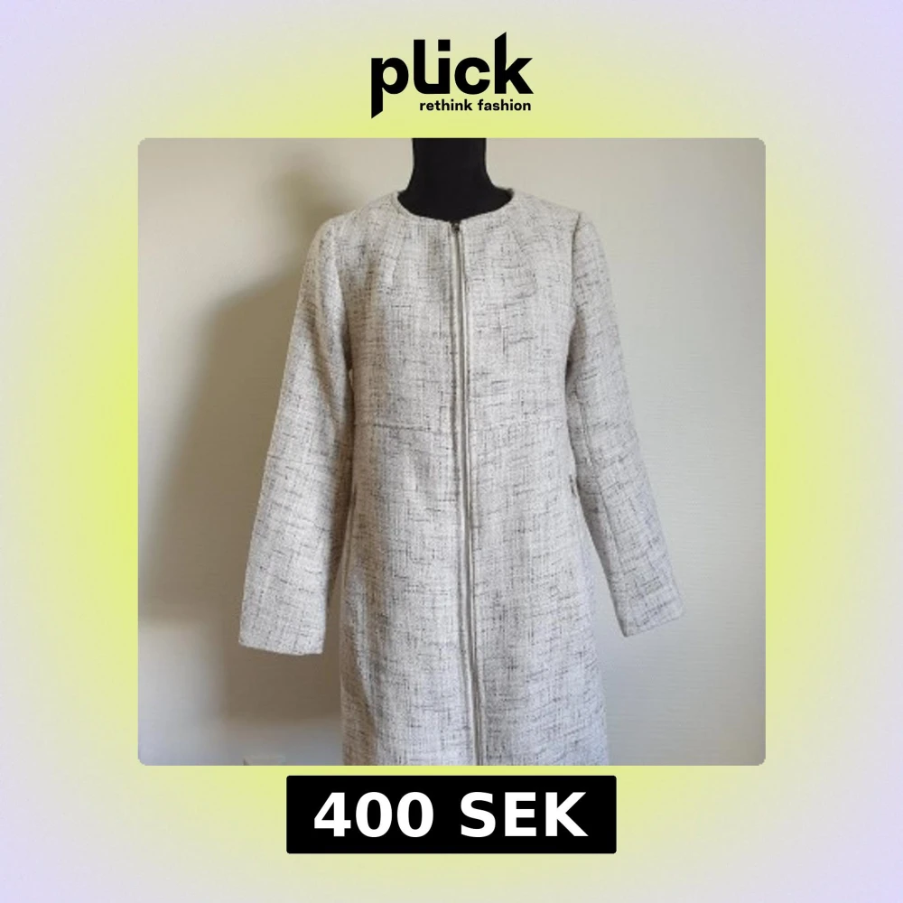 Stilren beige kappa i rak modell med diskret mönster och hel dragkedja framtill. Jackan har rund halsringning, långa ärmar och två fickor med dragkedja. Perfekt för dig som gillar minimalistisk och clean stil. Kappan är endast använd 1 gång.