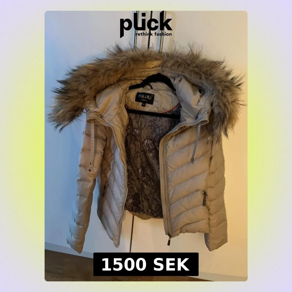 Snygg beige pufferjacka från Hollies med stor huva och fluffig äkta päls. Jackan har dragkedja framtill, två sidofickor med dragkedja och quiltad design. Insidan har ett coolt spetsmönster. Perfekt för kalla dagar och riktigt trendig look.