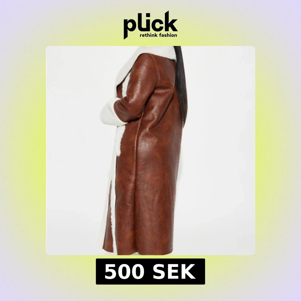brun lång kappa med vit fuskpäls på krage och ärmslut och varma material. Säljer den på grund av att jag använder inte den.