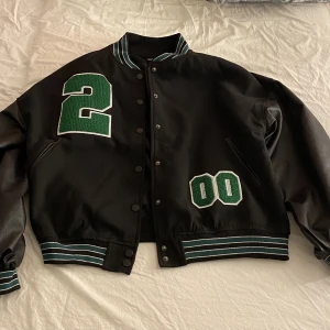 Grön, svart collage jacka. Använd bara 3 gånger och är i bra skick. Köparen står för frakt!