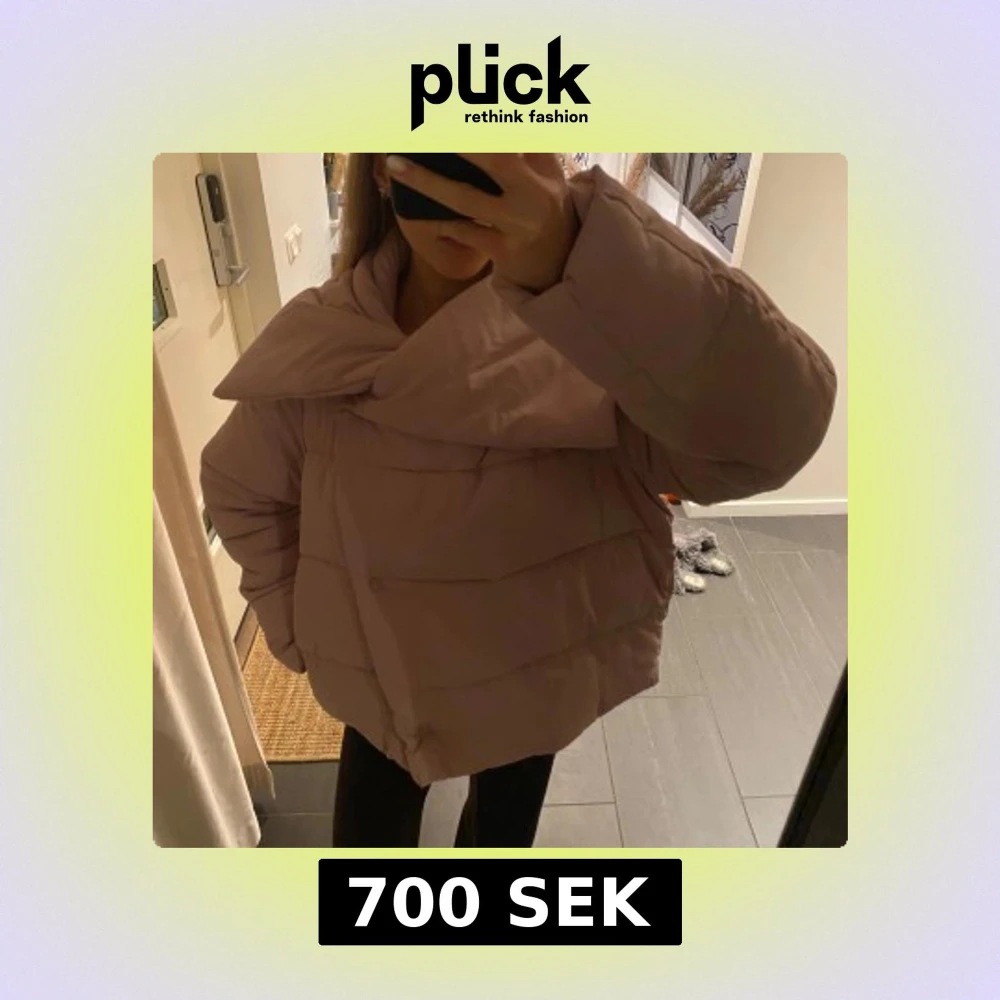 Säljer en snygg rosa pufferjacka med större krage och knappar framtill. Jackan har en oversized passform för mig som brukar bära S i jackor.