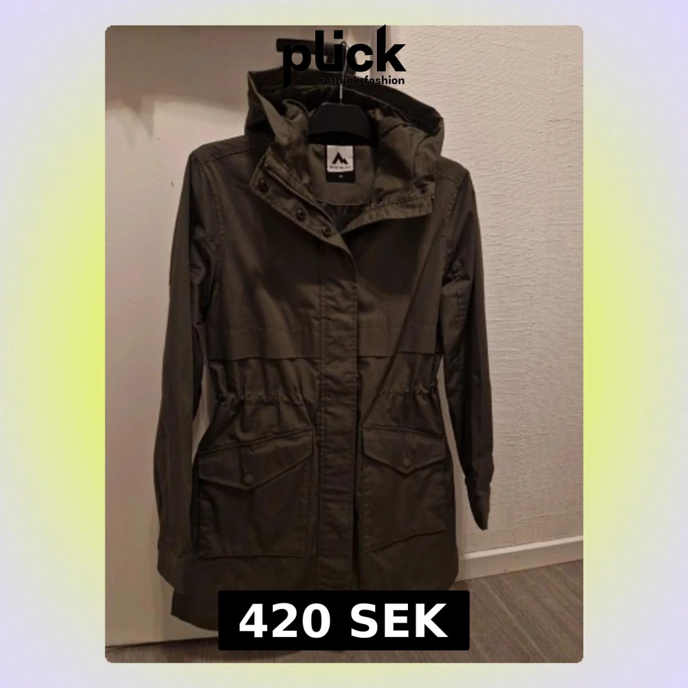 Säljer en snygg grön parkajacka från McKinley med huva och stora fickor framtill. Jackan har dragsko i midjan för bättre passform och stängs med både dragkedja och knappar. Perfekt för dig som gillar outdoor och vill ha en stilren look. Helt ny utan prislapp, nypris 799:-