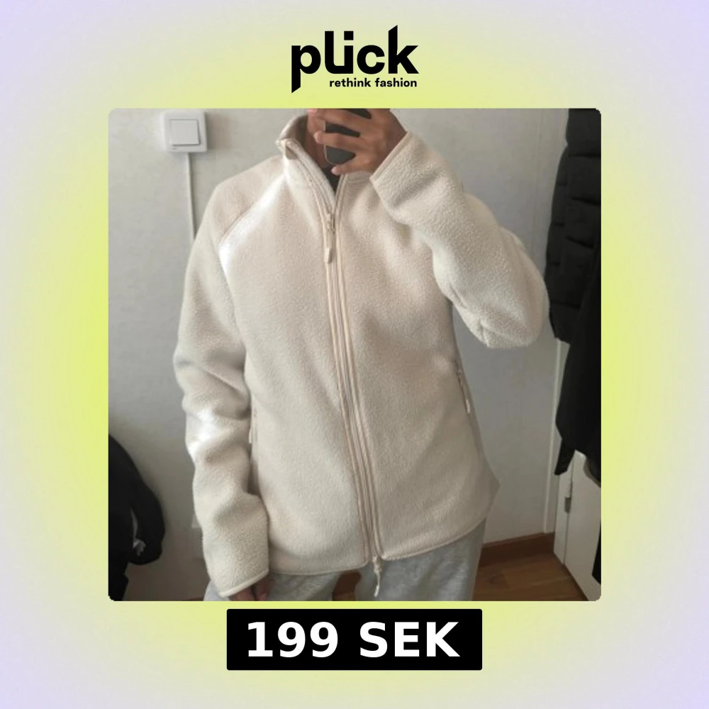 Mjuk och mysig vit fleecejacka med hög krage och hel dragkedja framtill. Jackan har två sidofickor med dragkedja och en enkel, clean design. Perfekt för chill dagar och när du vill hålla dig varm. Passformen är normal och ärmarna är långa.