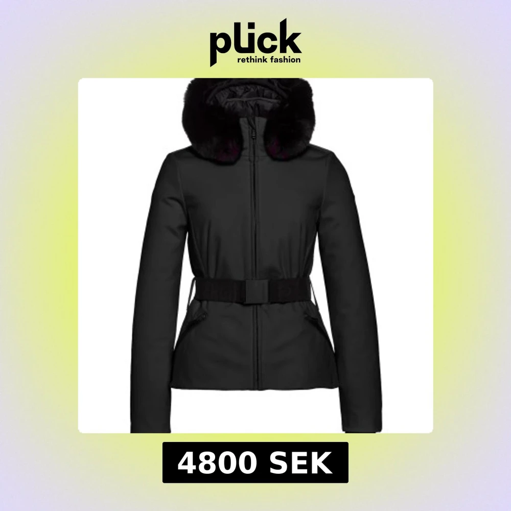 Snygg svart jacka med dragkedja och ett stilrent bälte i midjan. Jackan har en lyxig pälskrage och långa ärmar, perfekt för kyliga dagar.