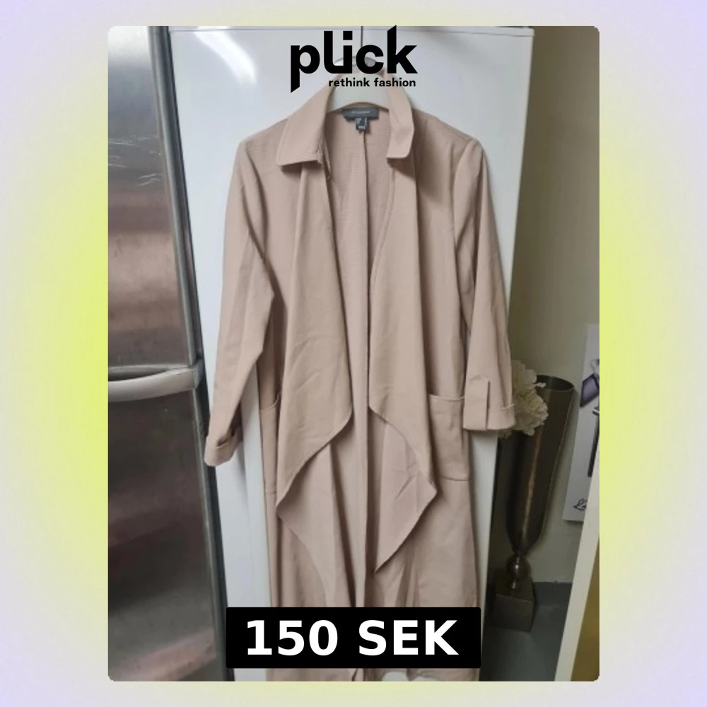 Säljer en beige trenchcoat från Atmosphere i storlek 36. Jackan har en snygg omlott-design med bred krage, långa ärmar och stora fickor framtill. Materialet är mjukt och har en lätt struktur, perfekt för dig som gillar stilrena och enkla plagg.