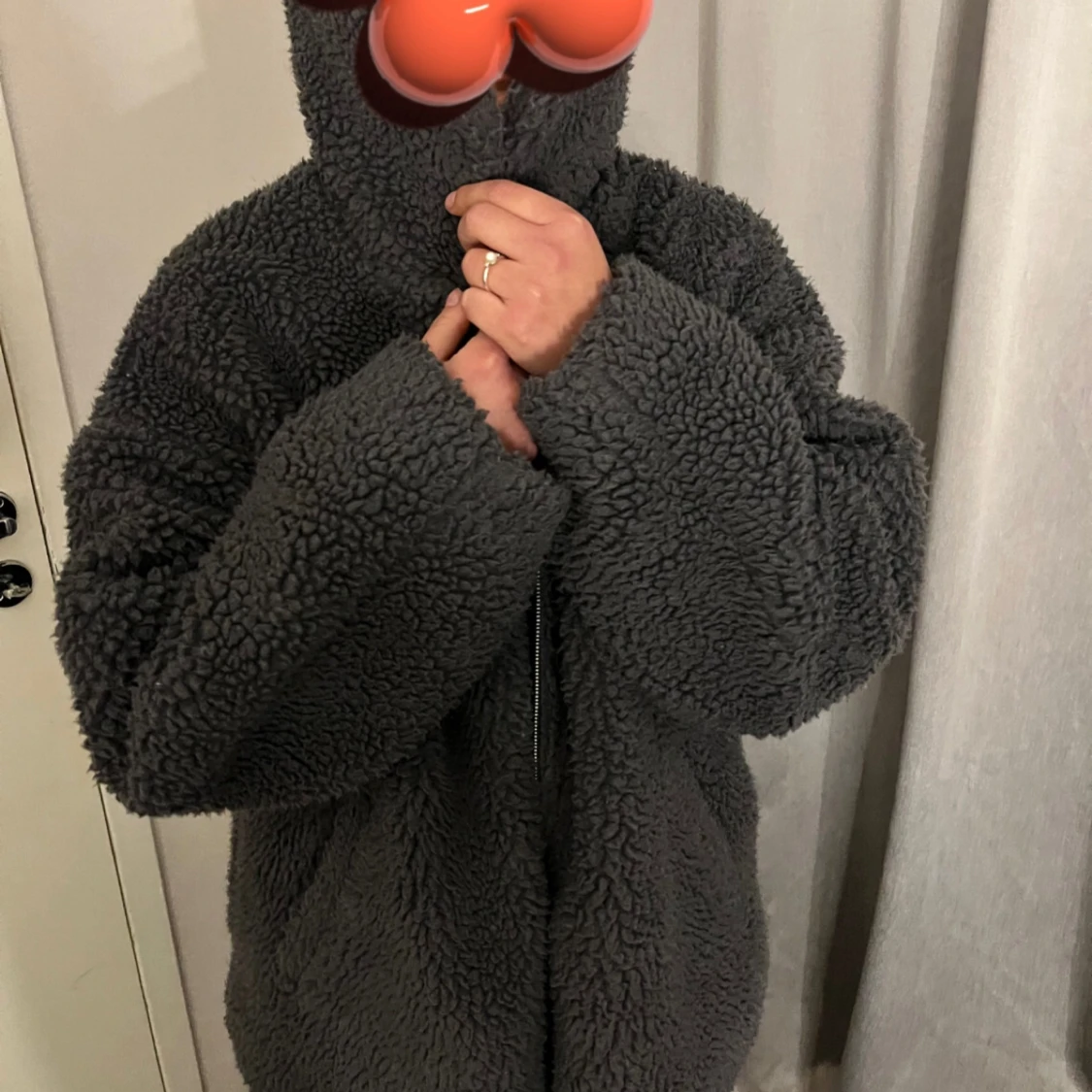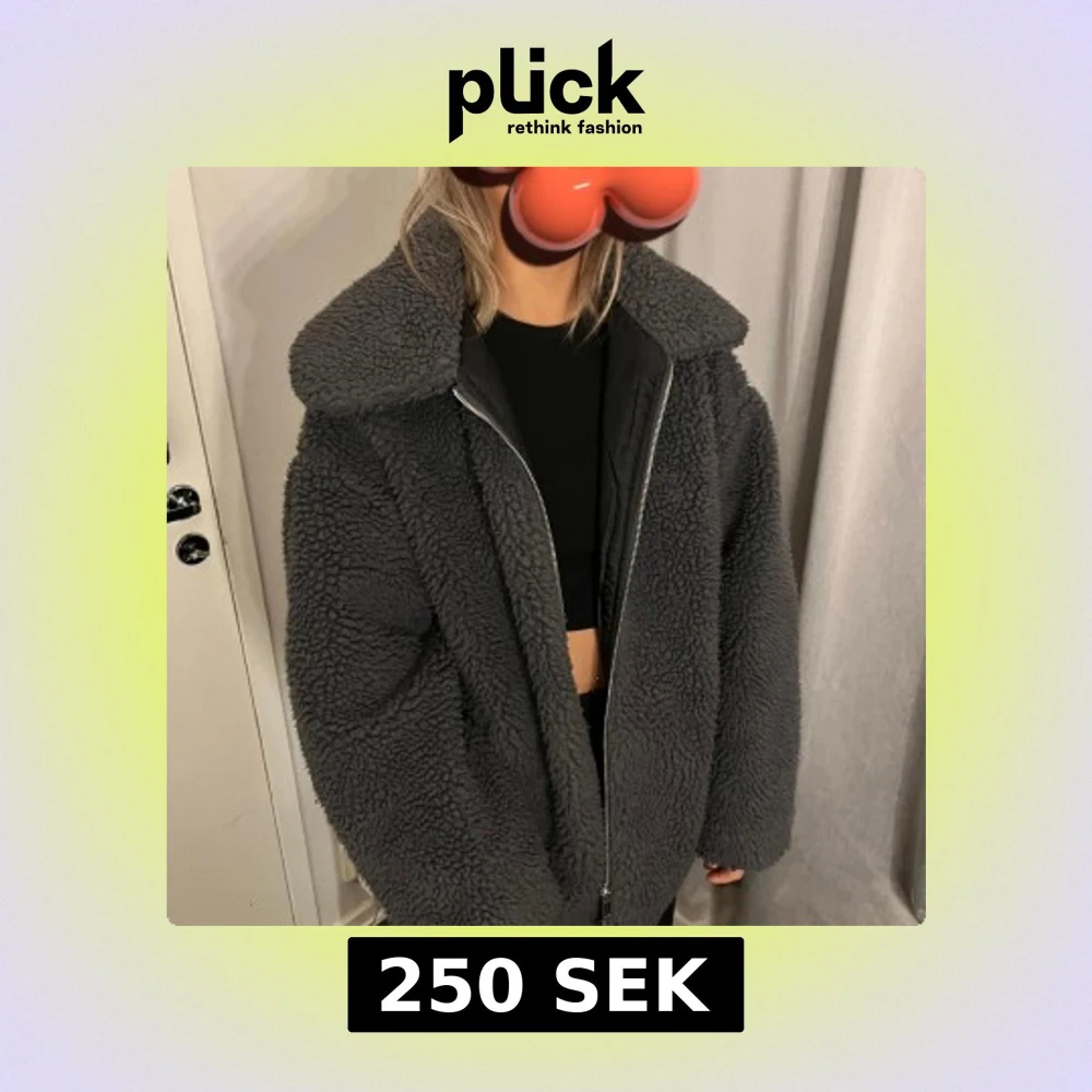 Grå oversized teddy jacka köpt i london i storlek s