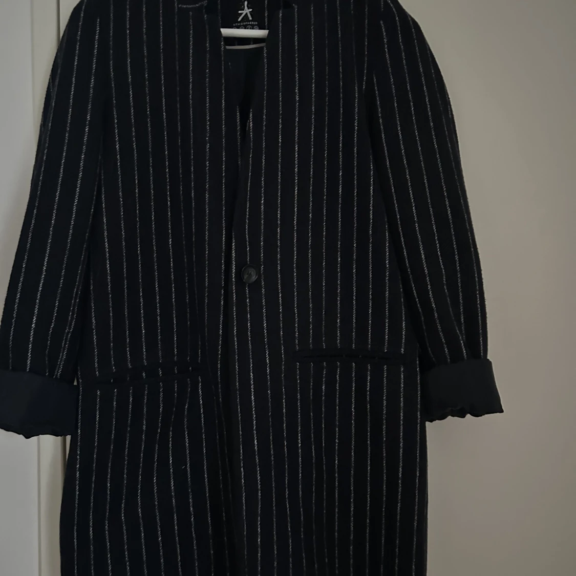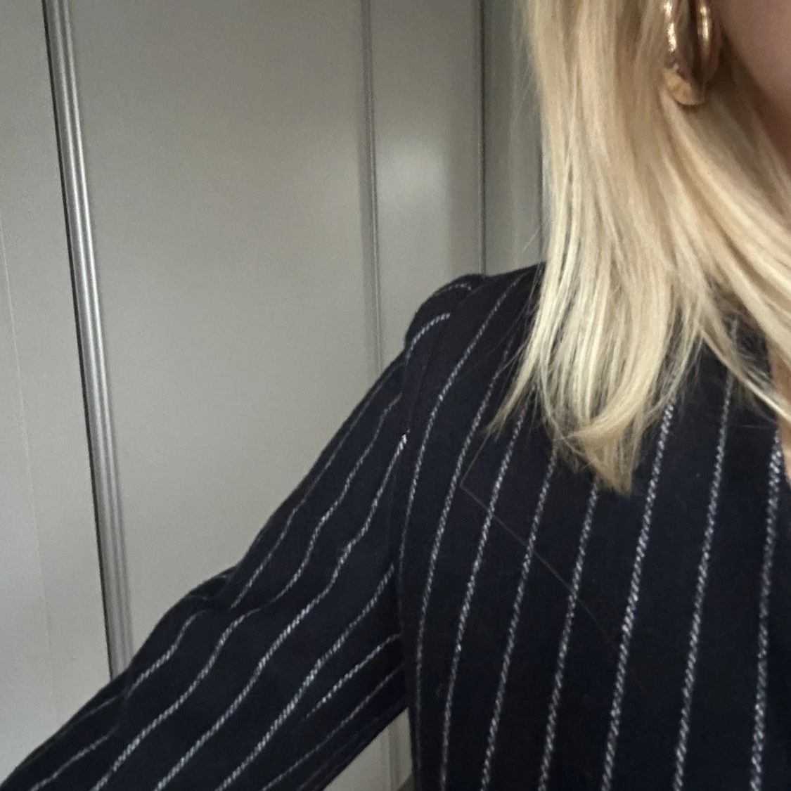 Superfin blåvit kritstrecksrandig kappa i fint skick!