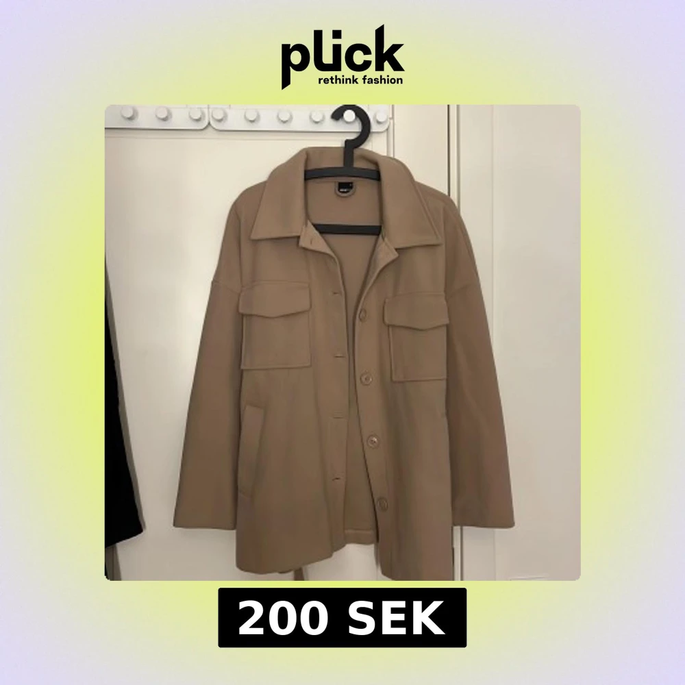 Snygg beige kappa med knappar och bälte i midjan. Jackan har långa ärmar och stora fickor framtill. Perfekt för en stilren look. Storlek M och har används 3-5 gånger.