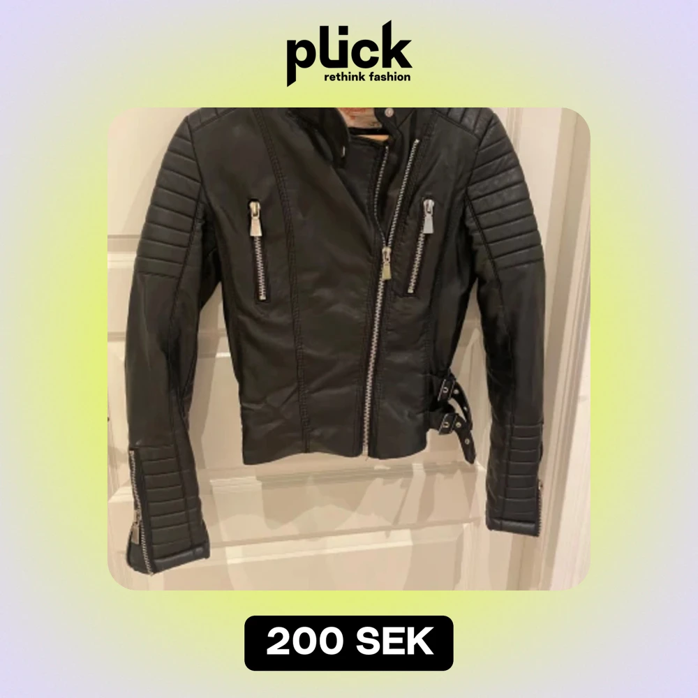 Säljer en snygg svart skinnjacka med coola dragkedjor och bältesdetaljer. Jackan har en tight passform och långa ärmar med quiltade detaljer på axlarna. Perfekt för höst och vår!