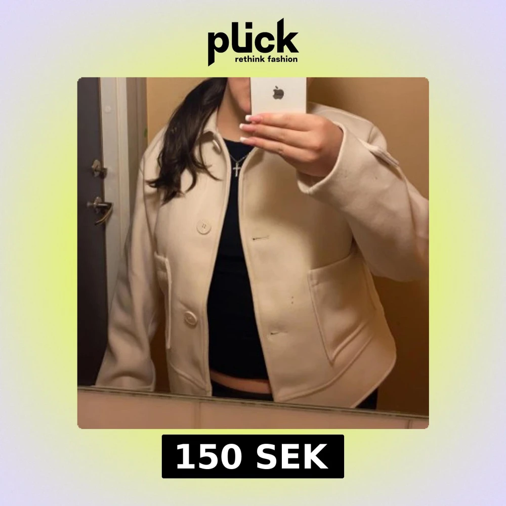 Säljer en beige kavaj med stora fickor och knappar framtill. Jackan har en rak passform och är långärmad. Perfekt för dig som vill ha en stilren och enkel look.