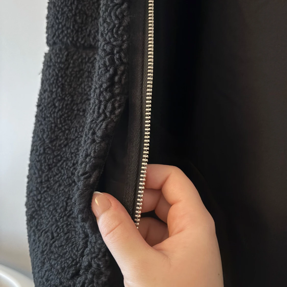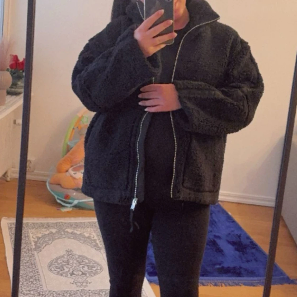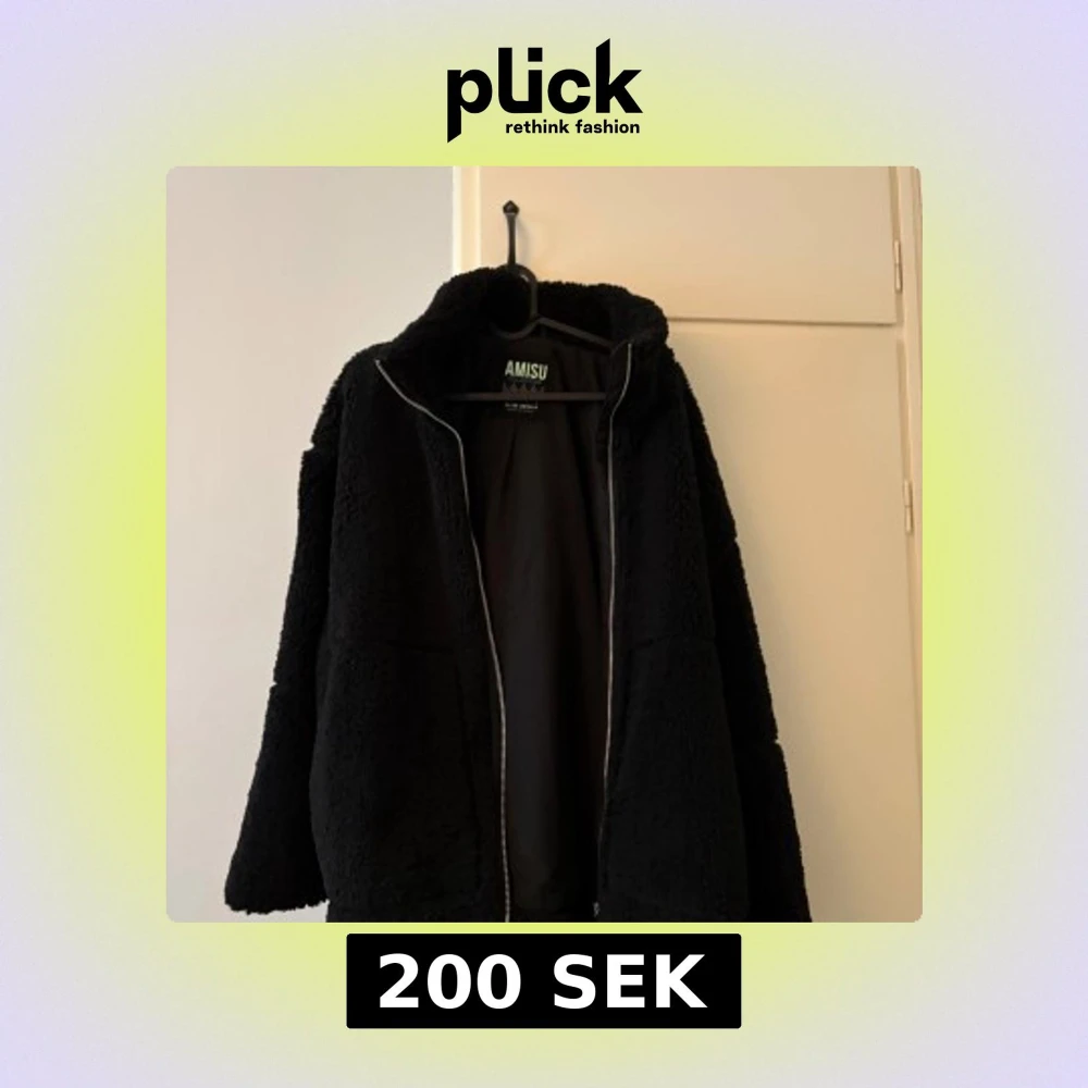 Mysig svart teddyjacka från Amisu med dragkedja framtill. Jackan har två fickor och är tillverkad i ett mjukt, syntetiskt material som ger en fluffig känsla. Perfekt för kyliga dagar. Storlek 38 men passar också 36, har ett litet jack där framme men enkelt o fixa om man vill annars syns de inte