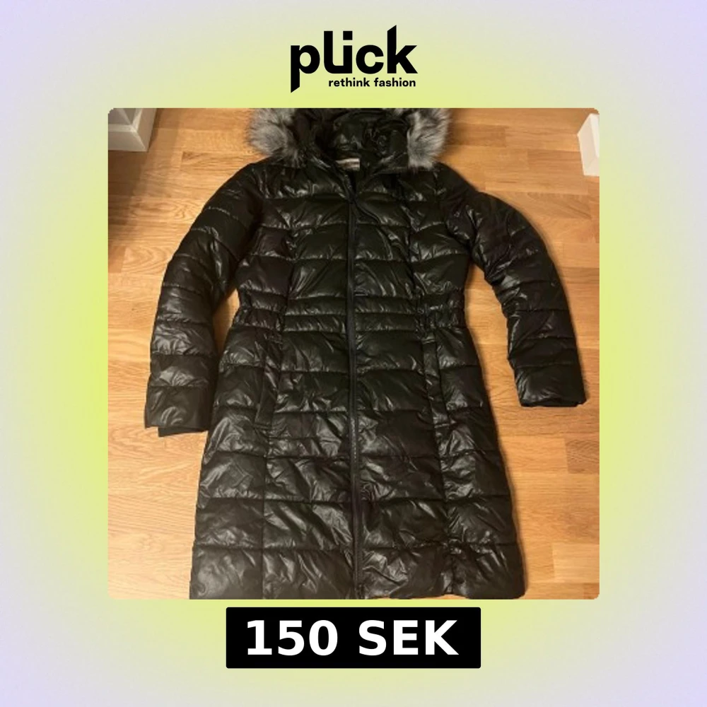Säljer en svart lång dunjacka med huva och fuskpälsdetalj. Jackan är quiltad och har dragkedja framtill. Perfekt för kalla dagar och har en snygg, figurnära passform. Klassisk look som funkar till många stilar.
