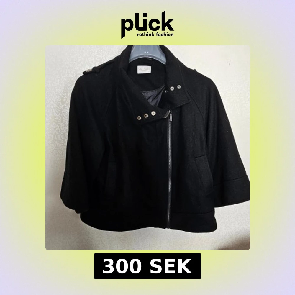 Stilren svart jacka från Mac Scott i ull med coola detaljer som sned dragkedja, knappar vid axlarna och trekvartsärmar. Jackan har hög krage och två fickor framtill. Perfekt för dig som gillar en edgy och modern look.