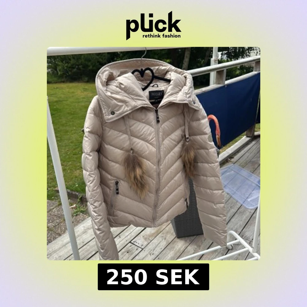 Beige dunjacka med pälskant Hollies