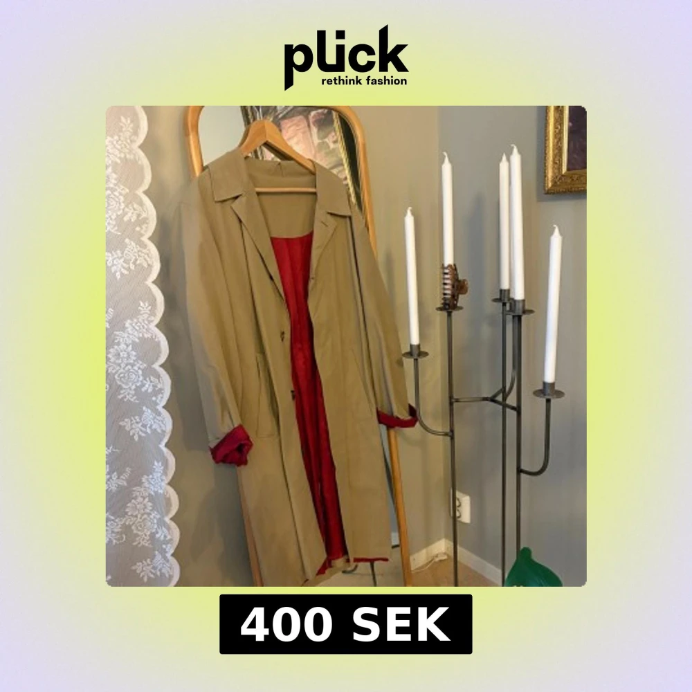 Säljer en klassisk beige trenchcoat med snygg röd insida. Jackan har krage, knappar framtill och två fickor på sidorna. Perfekt för dig som gillar stilrena och tidlösa plagg med en twist. Passar dig som vill ha en längre jacka med cool färgdetalj. Jag skulle säga att den är i storlek one size.