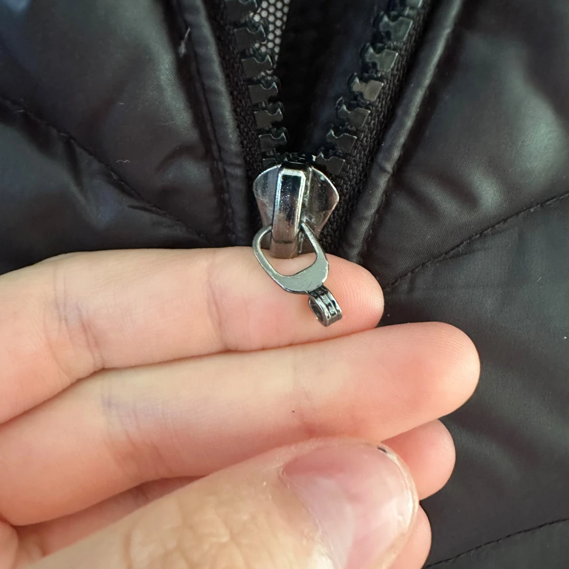 Svart pufferjacka från Hollies med snygga pälsdetaljer på huvan och snören. Jackan har dragkedja framtill som saknar hänge, två fickor med dragkedja och quiltad design. Perfekt för kalla dagar när du vill vara både varm och stilren. Äkta päls