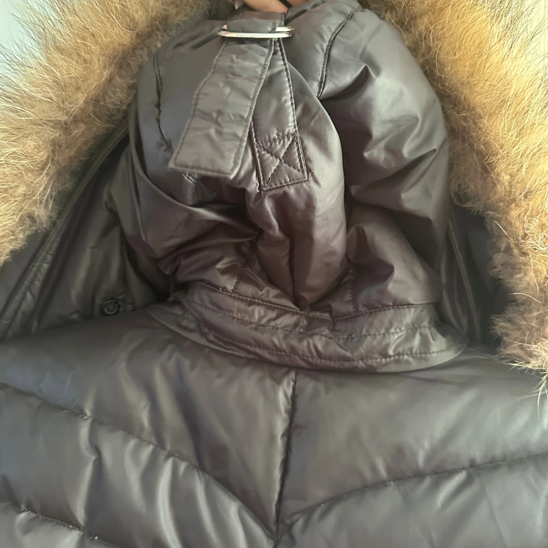 Svart pufferjacka Hollies med pälsdetaljer