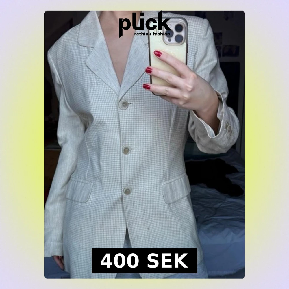 Snygg beige kavaj från JOY med diskret rutigt mönster och klassisk krage. Kavajen har tre knappar framtill, två fickor med lock och är helfodrad. Perfekt för dig som gillar stilrena och tidlösa plagg med en chill vibe.