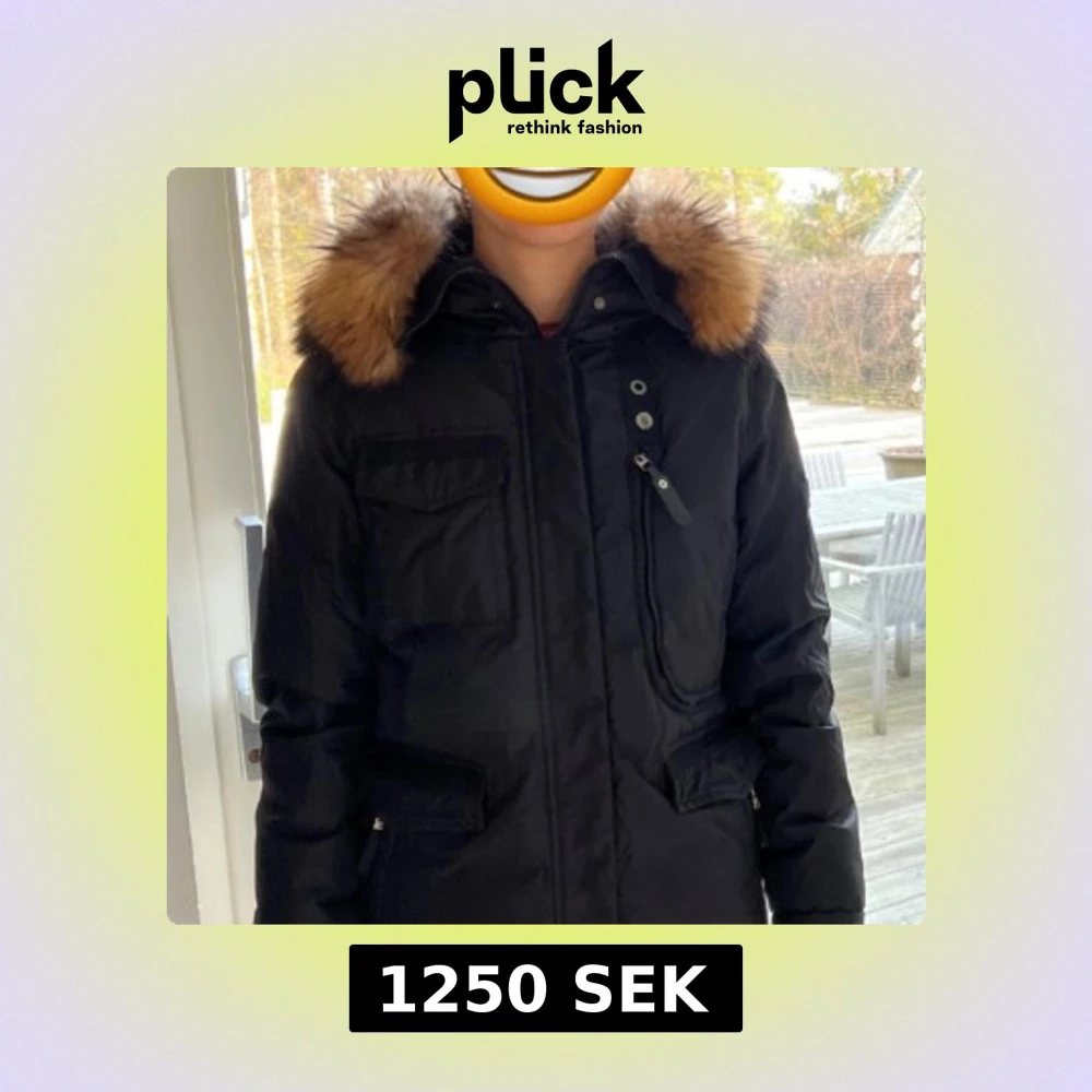 Säljer en svart jacka från Hollies med äkta päls. Draget på en dragkedja är utbytt då original gick sönder. Jackan är liten i storleken. Modellen är 175cm.