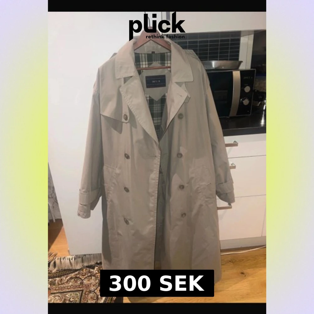 Säljer en klassisk beige trenchcoat från No 1 i storlek 50. Jackan har dubbelknäppning, bred krage och rutigt grönt innerfoder. Insidan har även quiltad detalj för extra värme. Perfekt för dig som gillar tidlös stil och vill ha en jacka med snygga detaljer.