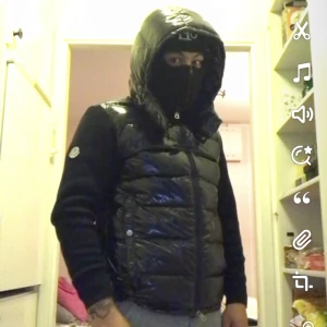 Tror detta är en kopia men isåfall en väldigt fint och varm Monc jacka. Storlek S/M Och är i bra skick trots liten skada vid sidan är fixad. Färgen gör mig osäker men svart eller väldigt väldigt mörkblå