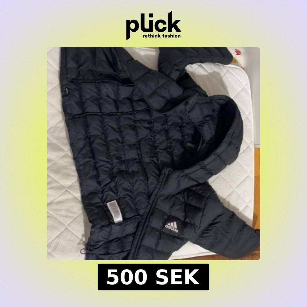 Svart dunjacka från Adidas med quiltad design och huva. Jackan har dragkedja framtill och diskret Adidas-logga på bröstet. Perfekt för kyliga dagar och har en sportig vibe. Tillverkad i syntetmaterial och dun för extra värme.